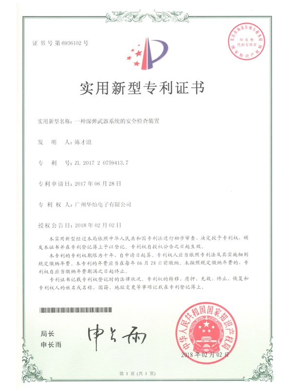 證書號6936102深彈武器系統的安全檢查裝置